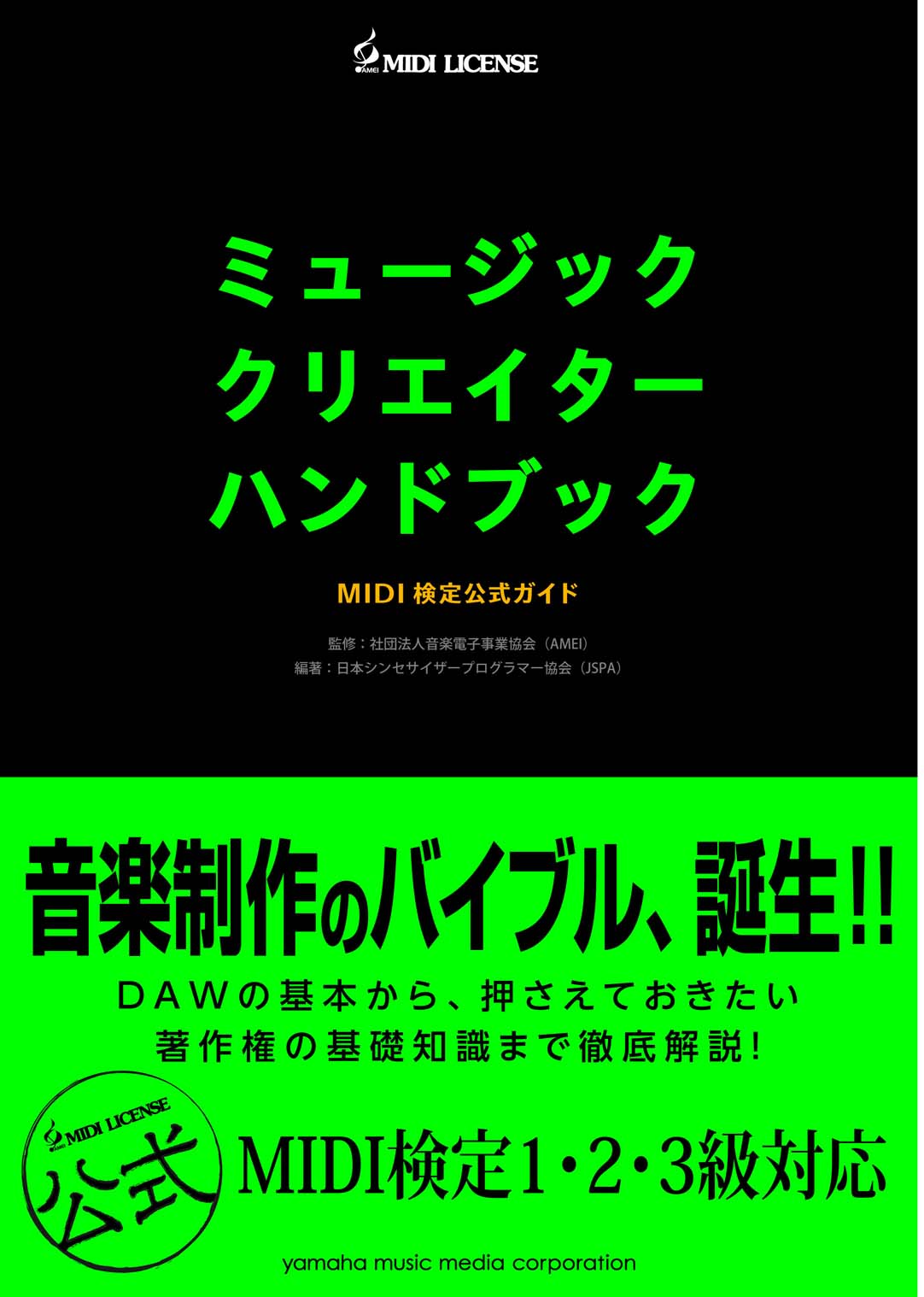 | 音楽制作のバイブル、誕生! DAWの基本から、押えておきたい著作権の基礎知識まで徹底解説!MIDI検定1・2・3級対応!! この10数年間に於ける技術進歩に伴う音楽制作の進歩には目を見張るものがあり、今やMIDIに加えオーディオの知識が必須の状況となっています。 このような時代変化に対応する為、認定制度の目的を「ミュージック クリエイターの育成」と新たに捉えなおし、幅広く一般書籍としての 「ミュージック クリエイター ハンドブック」を制作いたしました。